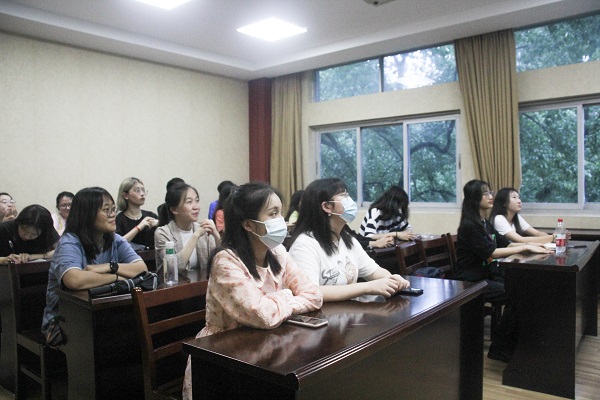 随后,在征求实践队员意见后,邱领对暑期实践活动中“衣、食、住、行”四个方面的具体安排做了详细说明。结合已有经验和现实情况,邱领对实践基地的情况进行了全面清晰的介绍,解决了实践队员会前所提出的困惑与问题。在19、20年青禾实践队暑期实践的记录视频的播放过程中,邱领也结合视频对实践中的不同活动环节及可能出现的问题进行了讲解,并以19年暑期实践活动中开展的“厉害了,我的国”主题绘画展为例,给予队员们关于开展爱国主义教育活动的相关建议。
