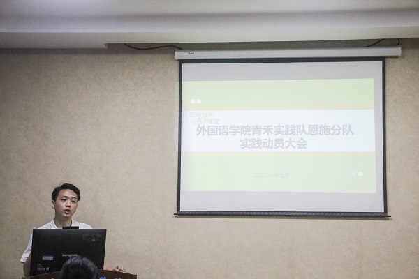 华大青年讯(通讯员 邓小莲 刘祺 于舒雅)为帮助和引导广大青年学生了解当前乡村发展现状,深入基层参与实践活动,培育和践行社会主义核心价值观,外国语学院积极开展暑期社会实践工作,在承接青禾实践队品牌精神下,共成立五支分队深入多地基层开展特色调研。7月6日下午,青禾实践队恩施分队于3318教室开展暑期社会实践动员会。参加本次动员会的有外国语学院青禾实践队恩施分队全体队员。外国语学院团委书记邱领担任主讲人。