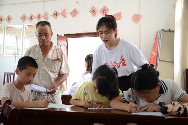 7月11日,追光实践队完成前期筹备,开始向广大村民招收小学学生,免费提供二十天的教学课程。孩子是祖国的希望与未来,羊楼洞村当地的年青人大多外出务工,这里的孩子大多都是留守儿童。当地教育水平较为落后,教学设施和师资力量难以满足学生在新时代下的学习与成长需求,德智体美劳教育发展不均衡。关爱留守儿童成长,开拓学生视野,成为当地的迫切需求。华中师范大学信息管理学院追光实践队秉持“追光而行,向阳而生”的志愿精神,坚持以需求为导向,无偿为希望家园开展“e启学”支教项目。