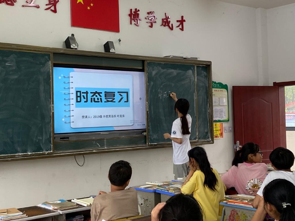 华大青年讯(通讯员 叶苑萍 阮心)7月5日,华中师范大学青禾实践队仙桃分队在仙桃市长埫口镇敦厚中学为准初三的学生进行课程辅导。本次辅导旨在助力乡村教育,激发初中学生学习兴趣和热情。实践队队员李冬雪带来的语文课讲解了节日的来源及文化常识,生动有趣、启发性强。队员叶苑萍的英语语法课,在帮助学生温习时态知识的同时,也带领同学们学习被动语态的简单用法。队员们的辅导反响良好,学生课堂表现活跃。