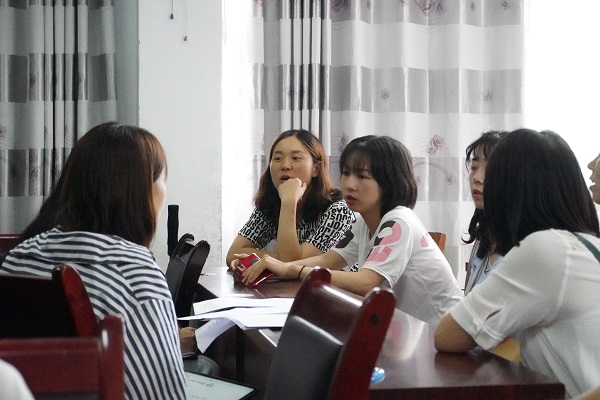 7月12日,调研组的队员们有幸获得了一次与在校小学组英语教师们的访谈机会。本次访谈以教学现状为主线,旨在探讨数字化媒体对教学的作用。据教师们介绍,目前农村师资紧缺且流动性较大,一个老师通常要担任几个科目的教学;此外,英语老师并非都是英语本科毕业,在完成县里组织的培训以及自学后便上岗教学。学校外语科目师资欠缺,家庭对英语学习重视程度也不高,学校每周安排的英语课程也只有两节,缺乏语言环境,课后学习英语时间少——乡村外语教育现状不容乐观,仍有许多亟待改善的问题。