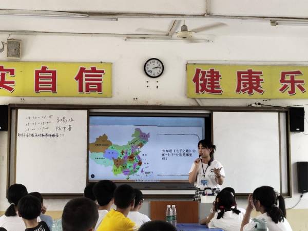 经过短暂的午休,下午二时,心毅志愿队的素质课开始了。初中班的第一节课是邢钰雯老师带来的“从‘七子之歌’到‘莲成一家’”,邢老师以《七子之歌》开场向同学们介绍了澳门的地理历史以及语言文化,并以亲身经历向同学们介绍澳门的美食风景。在《莲成一家》动人的旋律中,课程顺利结束。朱家楷老师的素质课——“宇宙时空之旅”,带学生体验了星球的奥秘。朱老师通过精彩的图片和写实的视频向同学们展示了奇妙的太空,课后,同学们纷纷围住朱老师请教更多的宇宙之谜。