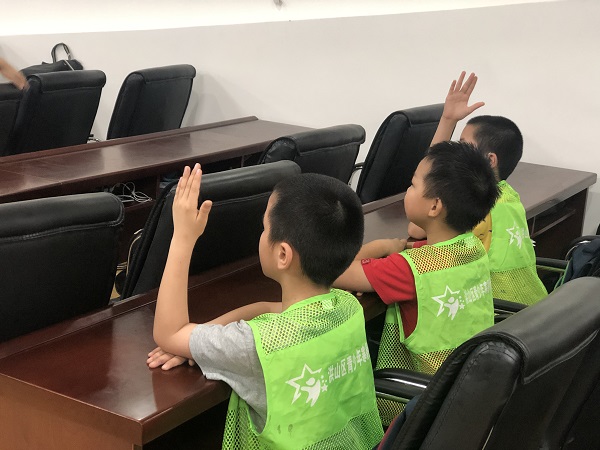 课程伊始,主讲老师与实践队队员们将教具搬入课室,学生们都热切地与老师们打招呼。“他们的热情让我们对这节课充满期待。”队员白雨欣表示。参与课程的学生们大多是暑期家中无人照顾而被托管在社区的孩子,他们来自不同的年级,且大多数年龄较小。为了更好地提高课程效率及培养学生们的团队协作能力,朱老师与助教按学生的年龄大小将大家分为十个小组。课程前半部分,朱老师先简单介绍了机器人和编程的含义:机器人是半自动或全自动工作的机器,而编程其实就是编写指令解决问题的过程。接着,朱老师展示了飞机大战、跳一跳等小游戏的代码,并通过提问互动选出几个学生上台来体验游戏。对于老师的提问互动,学生们都非常积极地参与,课堂氛围十分活跃。
