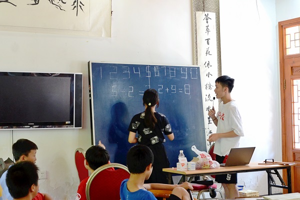 为了让羊楼洞村及周边村镇留守儿童的暑期学习生活更加“有滋有味”,追光实践队将语文、数学、英语等小学课程与思维拓展、爱国教育、心理疏导等素质课以及多种特色文化活动有机结合,精心准备了特色托管“套餐”,让孩子们的暑假更有养分。