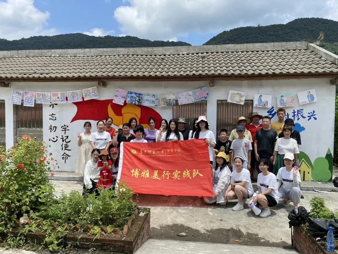 华大青年讯(通讯员 马天贝 陈语劼)为装点村容村貌、助力美丽乡村建设,2021年7月15日至17日,华中师范大学美术学院“博雅美行”实践队,于宜昌渔阳关镇南河村完成了一幅以“画说百年党史,美育赋能振兴”为主题的墙绘。