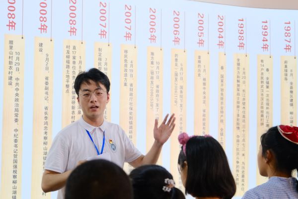实践队指导老师高玉茜在参观过程中强调,老一辈的人为了国家大计搬离了自己世代居住的地方,来到这片新的土地上重建家园,希望同学们认真体悟老一辈人的艰苦奋斗精神和舍己为公情怀,继承他们在艰苦岁月中形成的移民精神,从移民史中学习百年党史,在红色血脉中汲取奋进力量,为柳山湖镇再添光彩。