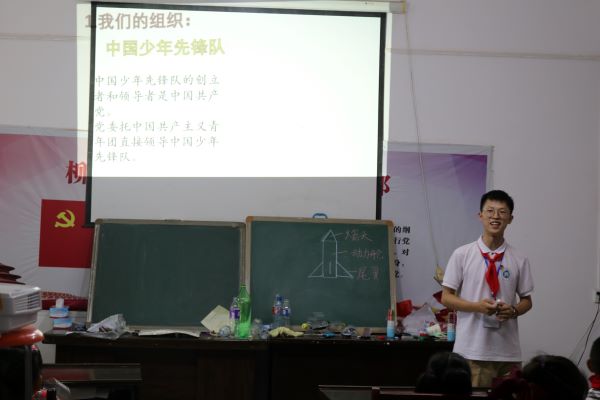 在参观完移民文化陈列馆后,实践队队员陈宣丞带领学生们一起回顾了中国少年先锋队的有关知识,就中国少年先锋队的队旗、队徽、队歌、队礼等给学生们做了介绍。全体学生起立齐唱队歌后,陈宣丞表示,学生们的专注和热情让他难忘,希望学生们诚实勇敢、团结活泼,争做光荣的少先队员。徐培优同学说道:“‘继承革命先辈的光荣传统’这句歌词让我想起了先辈们的移民精神,我一定会牢记并发扬革命光荣传统。”