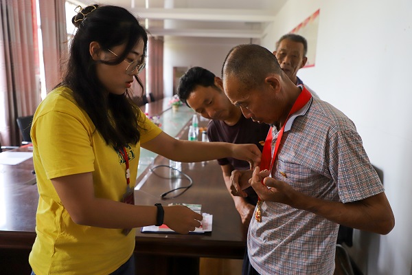 上午,实践队队员们对月池村四位党龄较长的党员进行了采访。有着55年党龄的老党员吴以堂,向实践队队员展示了党组织授予的党龄50多年奖章。他回顾了自己入党以来不同时期的心路历程,表达了“信党、爱党、跟党走”的坚定信念。