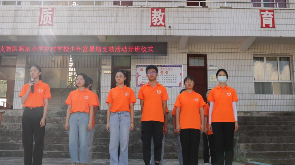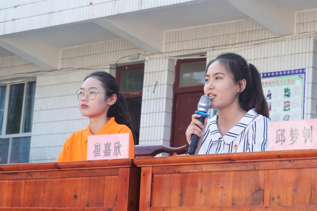 升旗仪式后,开班仪式正式开始。首先,向阳花暑期实践支教队队员代表邹妍在发言中对出席本次活动的领导和学生表示感谢,同时,向同学、家长、领导承诺,全体队员定认真履职、全力以赴、精益求精,为洞水小学的孩子们传递知识、技能与快乐。立志在社会课堂中受教育、长才干、作贡献,在观察实践中学党史、强信念、跟党走。