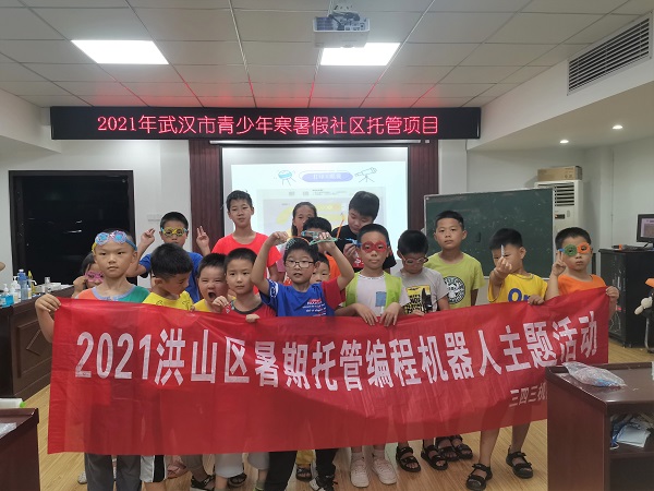 华大青年讯(通讯员 吴文倩)7月28日,华中师范大学计算机学院创客义教暑期实践队第二次前往洪山区北港青少年空间开展第24天的社区义教活动。该活动由华中师范大学计算机学院、“三四三”机器人文化科技公司和华中师范大学机器人协会联合开展。由“三四三”公司王诗情担任今日课程的主讲老师,实践队队员吴文倩、余卓立、宋宁宁担任助教。活动开办至今已进行了四种不同主题的机器人编程课教学的实践。
