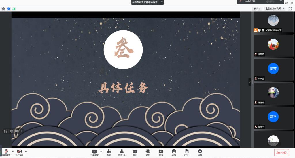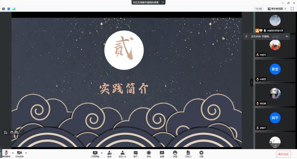 会议最后,负责人李骕雨提出对全体队员提出希望:一是队员要在实践中“学党史、悟思想、办实事、开新局”,读懂中国共产党人接续奋斗的精神密码,努力提高学习能力、实践能力、品德修养、政治素养;二是队员能够以“线上+线下”实践的形式,进一步加深对党史的理解和感悟。至此,本次线上会议圆满结束。