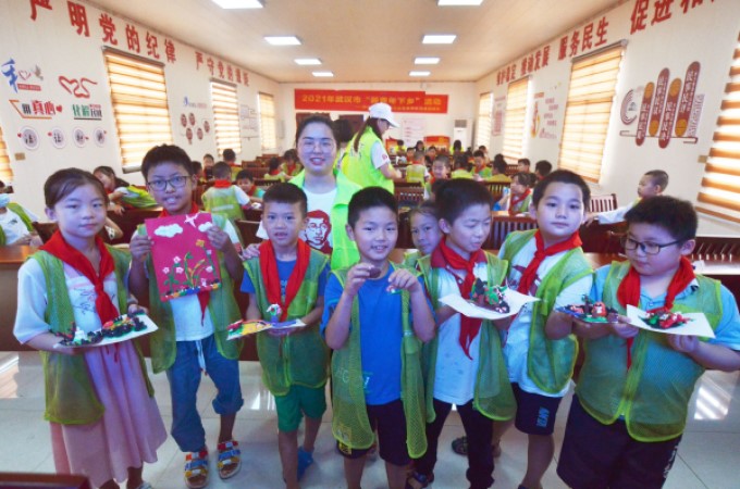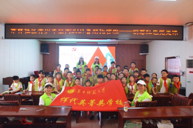华大青年讯(通讯员 徐琳琳)7月27日,华中师范大学恽代英菁英学校“溯源·流传·纪念”暑期社会实践队(以下简称“溯源实践队”)前往新洲区邾城街道章林社区和龙城社区开展系列红色教育活动,主要包括三个部分,分别是“创意美工巧破冰,提升素质促发展”美育活动、“学代英菁英精神,承革命先辈遗志”党史进课堂活动、“童声飞扬唱红歌,颂党恩泽抒真情”教唱红歌活动。