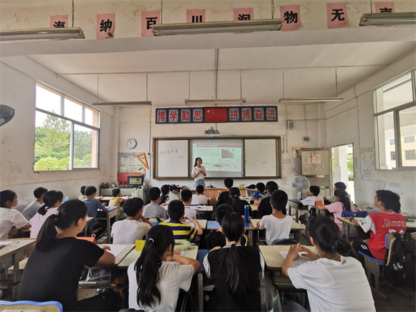 华大青年讯(通讯员 周凡惠)华中师范大学化学学院博雅·行知支教团来到湖北省黄冈市蕲春县白水中学进行为期15天的支教活动。本次支教对象为六年级升初中一年级的学生。支教队教学组成员们不仅安排了语文、数学、英文课程以帮助学生们从小学顺利过渡到初中,还安排了历史、党史等素质课程,旨在提升学生们的思想觉悟,培养爱国情怀。