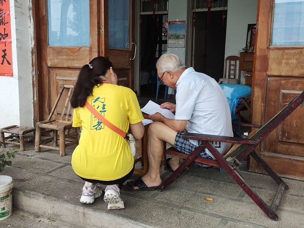 在调研过程中,队员们向当地居民和游客们介绍了此次调研的主题及意义,并针对调研问卷中的专有名词进行解释说明。在面临当地居民文化水平低、不识字等现象时,实践队队员任昕妍向受访群众一一讲解题目含义,以确保此次调研结果的客观性和普遍性。