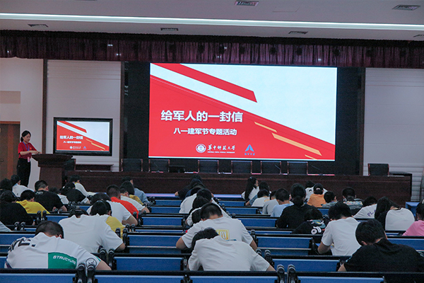 华大青年讯(通讯员 武瑞祺)7月27日上午,在华中师范大学圣兵爱心社爱心之旅暑期实践队与松阳县第一中学共同举办的暑期夏令营中,“给军人的一封信——八一建军节特别活动”成功举行。主讲人武瑞祺与暑期实践队队员、夏令营全体学员共同回顾人民军队的建设、奉献历程,体会双拥情深,并书写信件,表达个人感受。