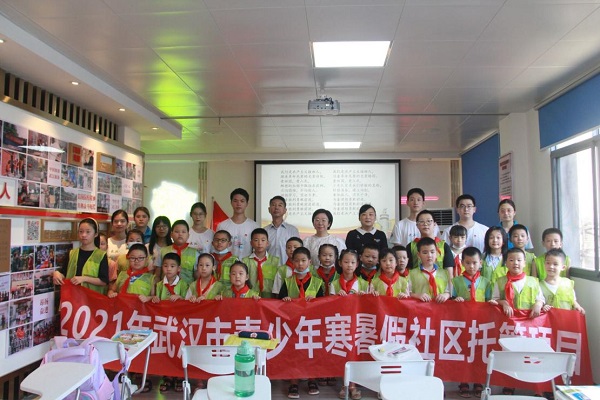 随着中国少先先锋队队歌响起,全体人员起立,并在心火武汉队的组织下进行合影留念。在与会领导的掌声中、同学们清脆悠扬的童声中、老师们热情的笑声中,本次开班仪式落幕。仪式过后,托管班的学生们牵住老师的手,走进为期两周的暑假课堂。