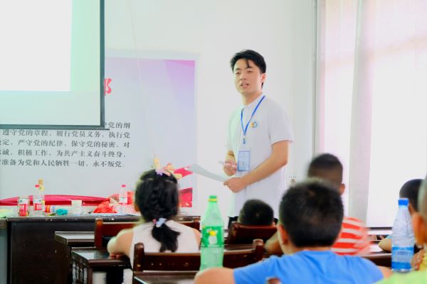 华大青年讯(通讯员 谭吉馨 刘金东)为让学生深刻了解与熟悉汉字,提高学生文学素养,增进学生对中华文化的热情,7月20日上午,在赤壁市柳山湖镇易家堤村“希望家园”儿童夏令营活动中,物理科学与技术学院党员国情学习与实践队队员刘金东为孩子们带来了一节以“中国文字演变”为主题的素质教育课程。