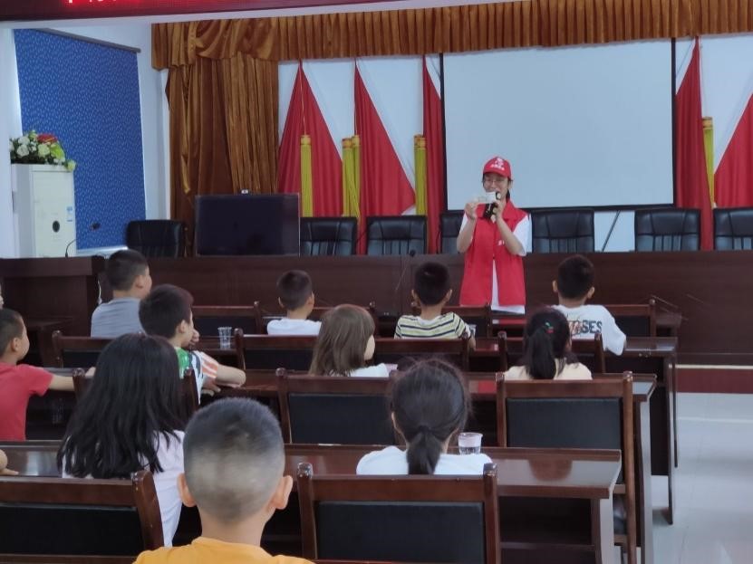 与此同时,由陈瑞亮带领的白桑关分队则来到当地的乡政府开展“金蕊活动”,对当地的小学生进行财商教育,以加深学生们对于货币知识的了解,引导他们树立正确的金钱观和价值观。本次“金蕊活动”主要分为知识讲解和趣味小游戏两个部分,其中穿插提问环节。在知识讲解的部分,白桑关队的队员们耐心讲解了纸币代表的面值、货币发展的多种价值形态、纸币的重要性、纸币对于社会发展的意义四个部分。