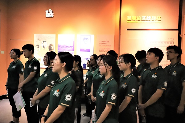 上午,实践队全体队员乘车前往湘鄂西苏区革命烈士纪念陵园。在讲解员的主持下,队员们在湘鄂西苏区革命纪念碑前,进行了默哀致敬革命先烈、为革命先烈献花、重温入党誓词、绕碑一周瞻仰等一系列活动,回顾了光荣革命历程,深切缅怀了革命先烈的丰功伟绩。