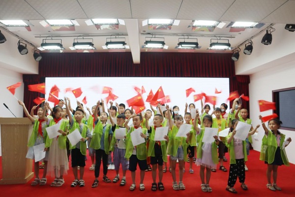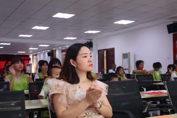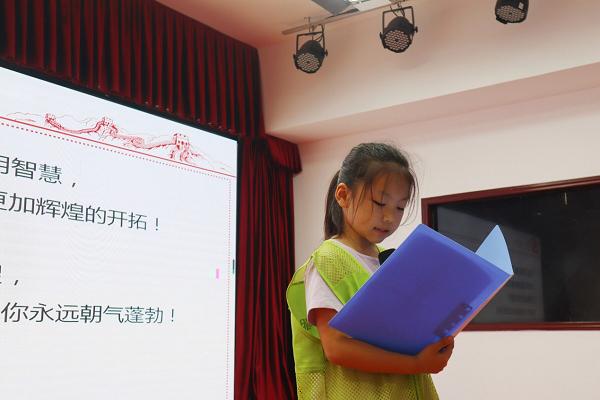 配音表演结束后,推普实践队的老师们也集体朗诵了诗歌《晨曦》。该诗谱写了中华民族腾飞的历程:在真理的旗帜的引航下,人民建设富饶美丽的家园。随后,学生们集体朗诵了诗歌《请党放心,强国有我》,大家声音响亮,读出了青少年的自信与豪迈,“请党放心,强国有我”的声音在会议室里久久回荡。最后,学生们齐唱少先先锋队队歌,本次红色经典诵读活动顺利结束。