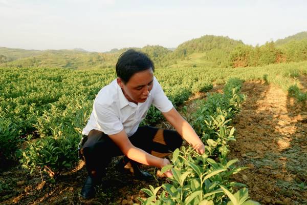 最后,全体队员共同前往洞水村茶叶种植梯田,对茶叶种植情况进行了实地调研。蔡德恩向队员们详细介绍了花山苗族乡茶树的生长和采摘环境,展示了不同茶叶的种植和采摘方式。在调研过程中,蔡德恩还详细介绍了未来花山苗族乡茶旅结合的发展规划,他指出花山苗族乡未来将“顺应乡村振兴战略,打造苗家特色旅游项目,以茶业推动旅游业发展,从而促进经济发展、带领村民共同致富”。