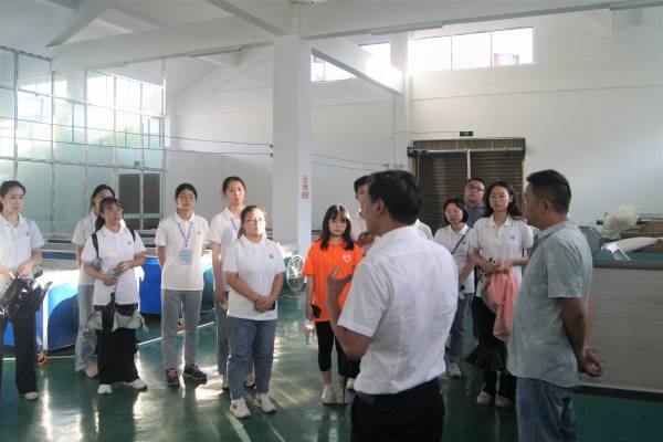 随后,蔡德恩带领全体队员实地探访了洞水村茶叶加工厂,对茶叶生产流程和销售情况进行了详细的介绍。全体队员逐一参观茶叶烘干机、揉捻机、炒干机等茶叶加工设备,蔡德恩详细介绍了每一个设备的使用要求和结构特点,向队员们完整地呈现了茶叶生产过程中的流程步骤。在提到销售渠道时,蔡德恩指出,花山乡白茶产期处于清明节前后,主要通过网络渠道对口浙江安吉等地进行线上销售,品质上乘、价值较高,深受消费者的青睐。