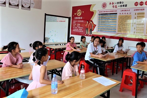 华大青年讯(通讯员 吕佳璇 唐佳骏)建设美丽乡村,关爱留守儿童。7月29日,华中师范大学数学与统计学学院(以下简称“数统学院”)菁诚红梦之旅暑期社会实践队前往湖北省洪湖市瞿家湾镇月池村开展“希望家园”关爱留守儿童活动。本次活动旨在为月池村的留守儿童提供课业辅导、防疫教育、心理辅导、科普教育等志愿服务,把温暖送到每一个留守儿童身边。