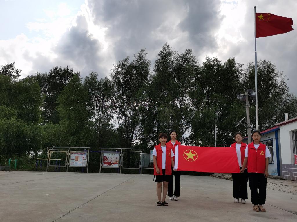 次日早晨,星火实践队队长张艺卉、队员王苏心、周慧宇、姚心蕊前往荣春村广播室,进行晨间播报,宣传推普宣讲会。随后,队长张艺卉与队员一同来到荣春村及江兴村中心道超市门口。经过分工,部分队员负责粘贴海报,其余队员拉起横幅,进行道路宣传工作。傍晚,实践队使用挨家走访的点对点宣传方式,向农户发放了实践队整理的普通话基础知识。在走访过程中,实践队选择了部分发音人,征得其同意后进行录音,录音内容为由星火实践队整理的、针对黑龙江方言(新)改编的汉语方言调查字表。该录音丰富了实践队黑龙江方言(新)音库,为实践队后续的活动开展提供了一手资料。