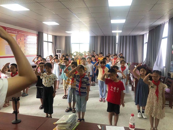 华大青年讯(通讯员 朱子悦)8月3日上午,华中师范大学心心火义教之家支教团崇阳白霓金龙村分队2021年“希望家园”支教活动结业典礼结营仪式暨文艺汇演顺利举行。大会由华中师范大学外国语学院心火支教团承办,金龙村党委书记汪中水莅临现场参与本次活动,金龙村支教老师及全体学员参加汇报。