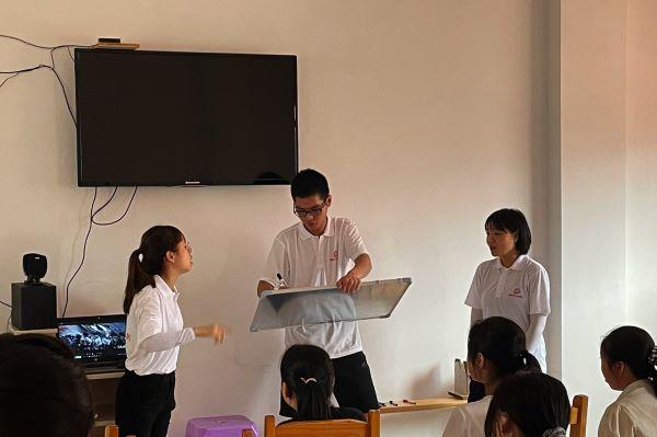 营盘村地处大山之中,聚居着土家族、苗族、侗族等28个少数民族,能流利使用普通话的学生占比较小。针对前期的摸排结果,实践队员们在随后的一周时间里从推普课程、创意游戏、访谈调研等三个维度对近百名学生开展普通话普及工作,通过汉字起源、字音、字形等系列课程,铺陈当前营盘村学生缺乏的汉语普通话文法教育。同时,队员们也开展了西班牙语、素描、吉他等一系列素质课程,为闭塞的乡村儿童带去不一样的色彩。
