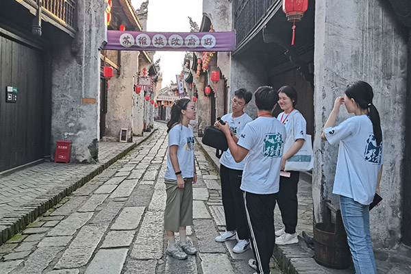 下午,实践队前往湘鄂西革命根据地旧址——瞿家湾老街开始视频录制。实践队队员程韦瀚、董湛业负责本次讲解视频的拍摄。赵芷琪通过插入不同手势将视频的各个部分串联起来,以保证视频的连贯性与紧凑性。拍摄完成后,队员们纷纷表示,这次活动帮助队员们得到了拍摄技能与知识储备的双重提升。