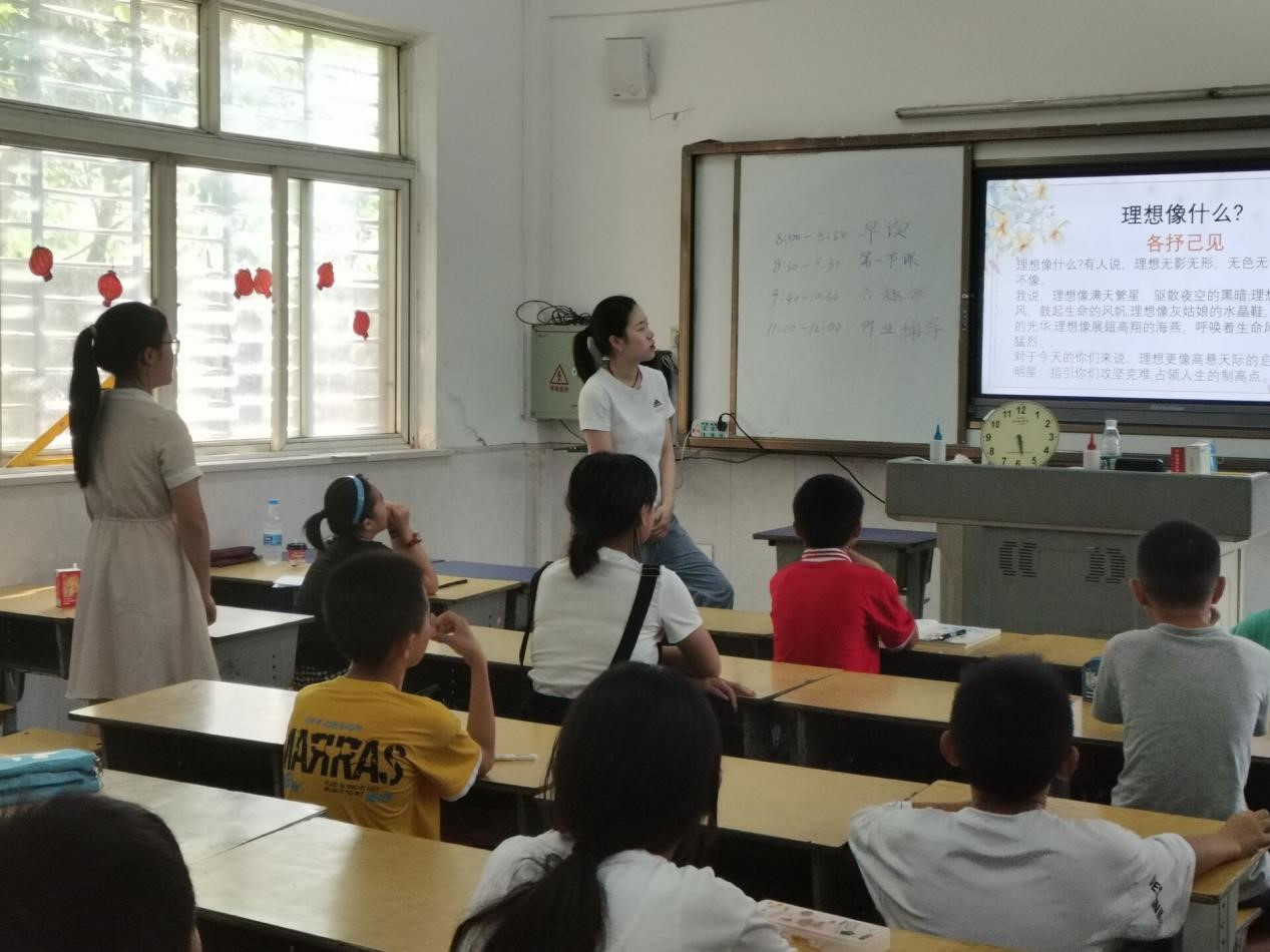 华大青年讯(通讯员 郑晗斐)7月15日,华中师范大学文学院守望星空暑期实践队在湖北省孝感市孝昌县开发区全洲学校开设情绪管理课程。该课程由郑晗斐担任主讲教师,宋子璇担任助教。开设该课程旨在帮助该校学生正确认识理想,并且树立正确的理想。