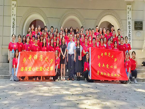 “恰是百年风华时,并肩奔向‘心’旅途”,全体参会人员在历史文化学院门口进行合影留念,出征仪式结束。此次爱心之旅的队员从华师起航,翻山越岭,为逆境中的生命带去温暖的光与希望。伴随的老师们的关爱和队员们的热情,爱心之旅一定会顺利进行!
