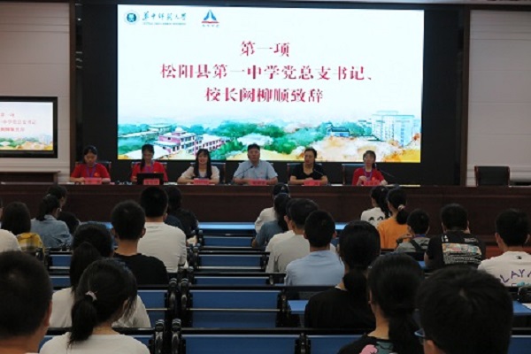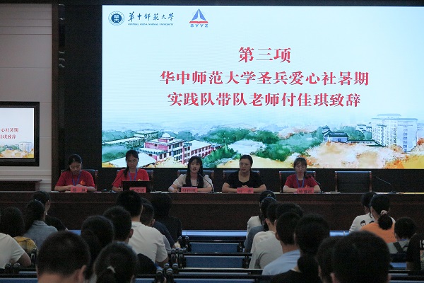华大青年讯(通讯员 武瑞祺 周玥宏)7月27日上午,华中师范大学圣兵爱心社(学生)(以下简称圣兵爱心社)社会实践队之一松阳队在松阳县第一中学顺利举行爱心之旅暑期夏令营开营仪式。松阳县第一中学党总支书记、校长阙柳顺,政教处主任叶萍,松阳队带队老师付佳琪,圣兵爱心社暑期夏令营一班班主任杨淋、二班班主任钟博淇和全体营员参与本次仪式。仪式由圣兵爱心社暑期实践队队长葛雪琪主持。