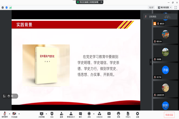 活动伊始,实践队队长王奕然简要介绍了本次暑期社会实践的实践形式与内容。王奕然介绍道,在新冠肺炎疫情常态化防控期间,循迹百年暑期社会实践队的实践活动将全程于线上进行,各实践队成员需从党史影视作品出发,从艺术创作、文化传播的角度赏析与提炼影视作品背后共产党人的精神和信念。其后,王奕然详细讲解了此次实践的实践要求和实践目的,回答了时间成员针对实践内容的疑问。其后,各实践队成员先后发言,汇报了个人的线上实践计划及预期成果。