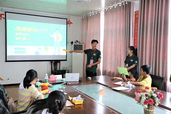 华大青年讯(通讯员 吕佳璇 王锦翔)为充分挖掘新冠病毒防控战中心理健康教育的价值,8月1日,华中师范大学数学与统计学学院(以下简称“数统学院”)菁诚红梦之旅暑期社会实践队于湖北省洪湖市瞿家湾镇月池村推进“弘扬抗‘疫’精神,践行青年担当”主题的班会活动开展。本活动旨在引导留守儿童关注自身健康,做好疫情防护工作,学习抗“疫”新精神。