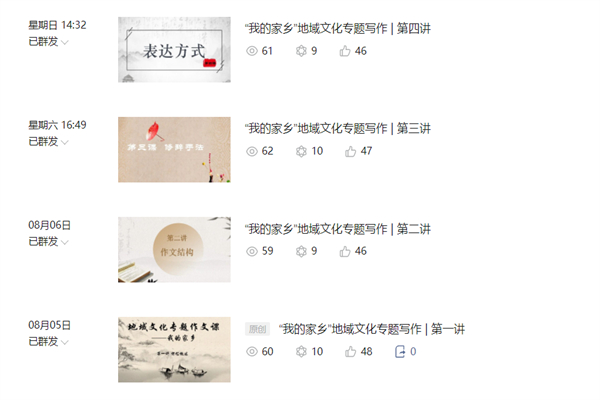 在20天的时间内,两名成员共进行了四节微课的录制。他们以问题为导向,通过分析前期所集资料中语文写作教学存在的突出性问题,总结重难点,最终以“作文结构”“表达方式”“修辞手法”三个板块为切入点,提供更有针对性的教学内容。由于课程主要面对的是小学生群体,因此,在教学内容的选择中,他们也特别注重适应小学生的学习思维,结合当地文化,制作适合小学生学习的微课。而在具体的录制过程中,团队成员也对课程的质量提出了一定的要求。微课主讲人卫薇讲到:“我们每节课的时长都会限定在15分钟以内,以便学生们能够更有效地吸收知识。同时,在授课过程中我们也更加注重语音质量的清晰度,减少停顿、卡壳等现象。”