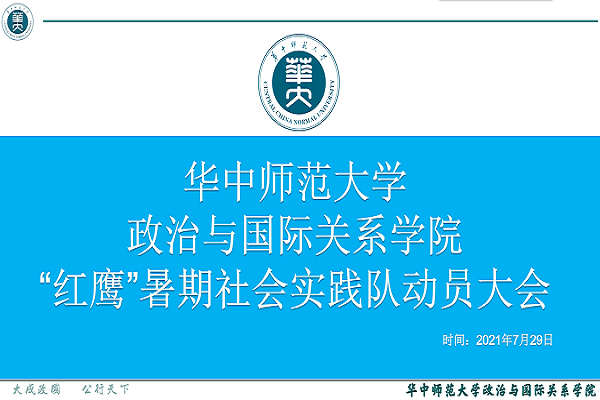 华大青年讯(通讯员 杨雨昊)正值建党百年之际,为追寻党的足迹,传承红色基因,进一步深化党史学习成果,7月29日晚,华中师范大学政治与国际关系学院(以下简称政国院)“红鹰”暑期社会实践队在线上召开了实践动员大会。此次会议由队长杨雨昊主持,实践队全体队员参加会议。