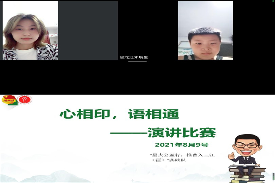 华大青年讯(通讯员 吴鸿仪)8月9日上午,由华中师范大学“星火公益行,推普入三江(疆)”暑期社会实践队(以下简称“星火实践队”)开办的的普通话推广夏令营于腾讯会议如期举行。星火实践队队长张艺卉确认参与人员,队员齐瑞担任本次夏令营课程主持人。