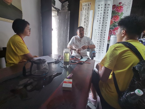 在走访过程中,队员们与洪湖当地党员瞿建业进行交流。据悉,瞿建业在洪湖当地从事农业、渔业以及商铺经营工作,是当地乡村经济发展的先驱人物。在提及如何发展洪湖当地经济,促进乡村建设时,瞿建业认为,发展洪湖市的经济首要任务是发扬当地的红色文化。他建议老街的商户们合理利用当地优势特色,深度挖掘出红色历史背后文化底蕴,优化游客体验,达到外来游客与当地居民双方互惠互利的效果。