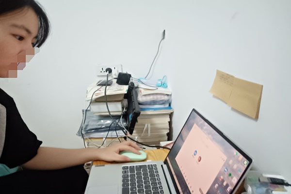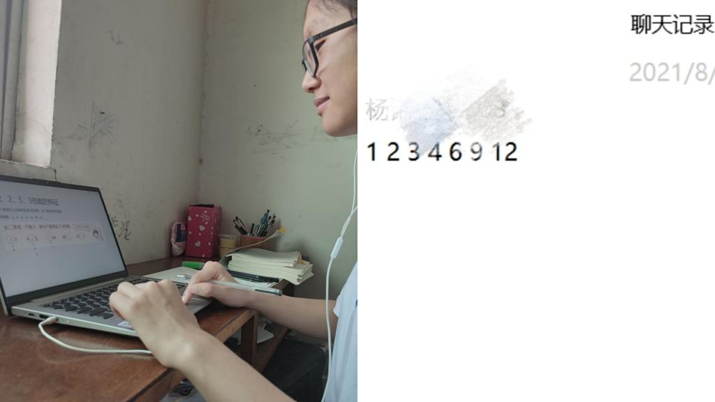 “欢迎小杨(化名)小同学来到课堂!”伴随着亲切的话语,孟瑞洁志愿者开始了第一次网络授课。第一节课里,孟瑞洁带领小杨同学复习了观察物体、因数和倍数、长方体和正方体、分数的意义和性质四个单元的内容。教学过程中,孟瑞洁发现小杨对分数这一部分知识的掌握较薄弱,于是把教学重点放在分数的练习巩固上。结束分数概念知识的学习后,针对小杨计算能力弱的问题,孟瑞洁拿出提前准备好的分数计算题让她做。在小杨做题的过程中,孟瑞洁小声提醒:“不要着急,慢慢做,争取全对。”在孟瑞洁的鼓励下,小杨准确的解答出了所有计算题。面对这样大的进步,孟瑞洁忍不住隔着屏幕鼓掌,第一节课也顺利结束。谈到感想,孟瑞洁表示,第一次授课很紧张,也担心孩子不配合。结果真正开始讲课,发现自己好像真的成为了一名老师,想要把自己知道的全部告诉孩子,这种感觉很过瘾。
