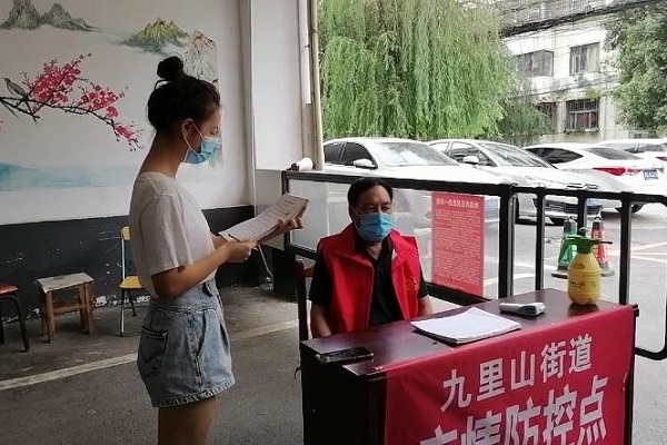 访谈过程中,徐满芳就出入人员管理、工作感受、社区防疫规定等方面同门卫进行交流沟通,并做访谈记录。在访谈后,徐满芳表示:“疫情防控工作的顺利展开,离不开在烈日下默默奉献的工作者,也离不开疫情防控的所有人。”随后,调研队员们根据访谈记录,修改部分调研问卷。