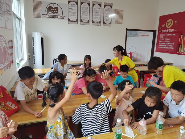 华大青年讯(通讯员 黄思涵)为了更好地帮助队员们体会乡村教育现状,提高留守儿童科学与道德素养,8月3日,华中师范大学数学与统计学学院(以下简称“数统学院”)菁诚红梦之旅暑期社会实践队全体成员前往月池村希望家园开展科普类课程。
