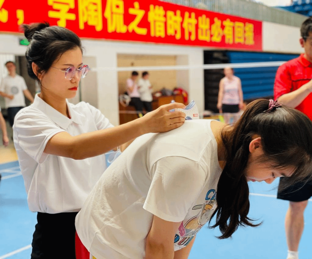 实践队一行来到贵阳一中体育馆,为学校师生送“科学健身”服务。赵华面向学校师生,开展了关节柔韧性测量。彭亚力面向贵阳一中学生开展了脊柱侧弯筛查,共完成筛查80余人次。孙波介绍了运动的重要性及高强间歇运动的好处,带领学生进行了拉伸训练及有氧运动训练。王兆俊和戚宁向学生讲解中华传统体育项目——武术,并展示了武术套路,以及完成抱手礼的教学。