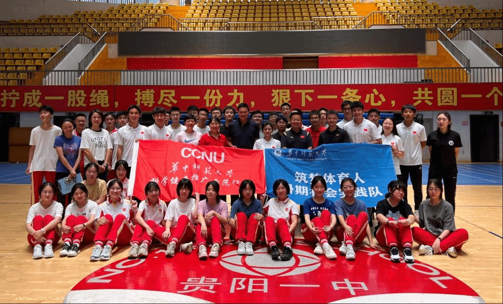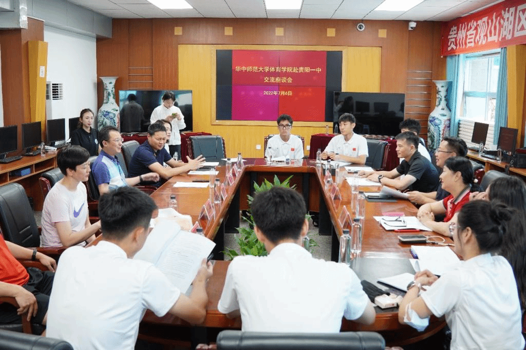 华大青年讯(通讯员 张俊仓)7月6日,体育学院党委副书记高尚、博士生导师翟林、副教授赵华带领华中师范大学体育学院“筑梦体育人”暑期社会实践队,开展科学健身推广示范行动,前往贵阳市第一中学,探讨体育教育教学,了解贵阳地区中学体育教师需求,为贵阳一中师生送上“科学健身”服务。贵阳市第一中学党委书记兼校长陈章义,副校长曾强、蒋骞一行人接待实践队。