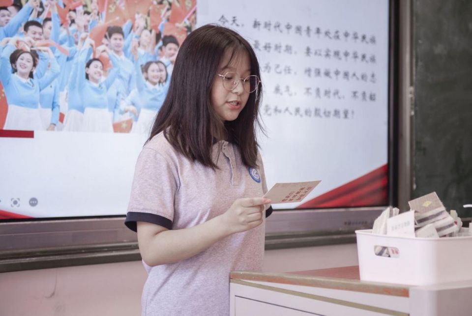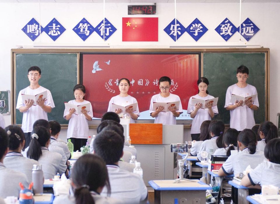政治与国际关系学院“知行”暑期社会实践队以视频、诗歌朗诵、主题演讲、现场互动等多种形式,向鹤峰一中师生展示了在烽火年代青年大无畏的英雄气概、舍生取义的人间大爱。本次党课以习近平总书记在参观《复兴之路》展览讲话中所引用的“而今迈步从头越”、“人间正道是沧桑”、“长风破浪会有时”三句古诗词的解读为开端,张丞锐通过宣讲带领鹤峰一中学生回顾历史、立足现在、展望未来。随后,葛梓涵、苏豪、胡晓晗、王丽晴、吴津蝶、谭巧灵同学朗诵《青春中国》,他们将诗歌的灵动、史实的厚重融合起来,通过真挚情感进行表达,让党史潜移默化、“声”入人心。