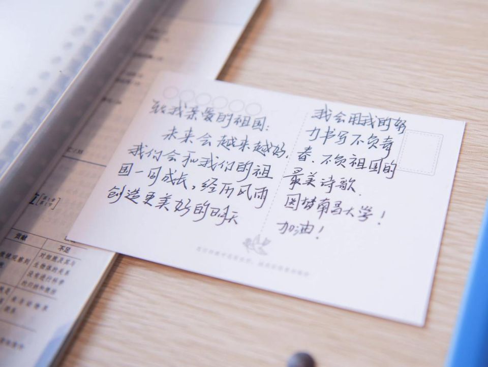 在青春告白祖国环节,实践队员们向在场学生发放明信片,引导同学们在明信片上写下对祖国的深情告白,为祖国颂赞歌,彰显了青年对祖国炽热的爱。
