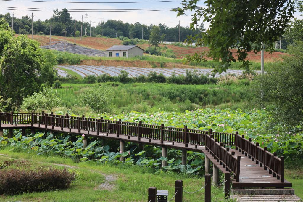 涂家垴镇地处梁子湖畔,周围环绕万亩松林,田野间连绵稻田和荷花池交错分布,自然环境优美。实践队员在参观中了解到,涂家垴镇始终坚持“利用好山水自然条件,做好乡村振兴大文章”的理念,发展全域旅游运营模式。各个村庄凭借其特色的农家产业,以及深厚的文化底蕴,走上了“文旅融合”“文娱融合”“农旅融合”的第六产业道路,实现了乡村振兴。