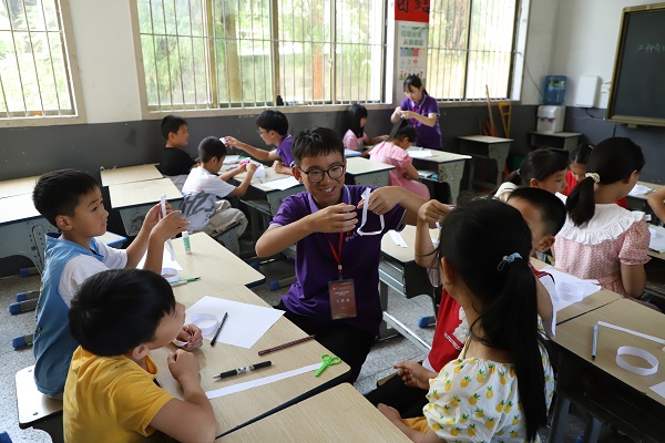 华大青年讯(通讯员 王姚楚凡)为丰富当地儿童的科学文化知识,加强其动手能力,7月13日,数学与统计学学院菁诚暑期实践队酉阳分队(以下简称“数统实践队”)赴酉阳土家族苗族自治县南腰界镇南龙小学校开展“希望家园”支教帮扶暑期社会实践活动。