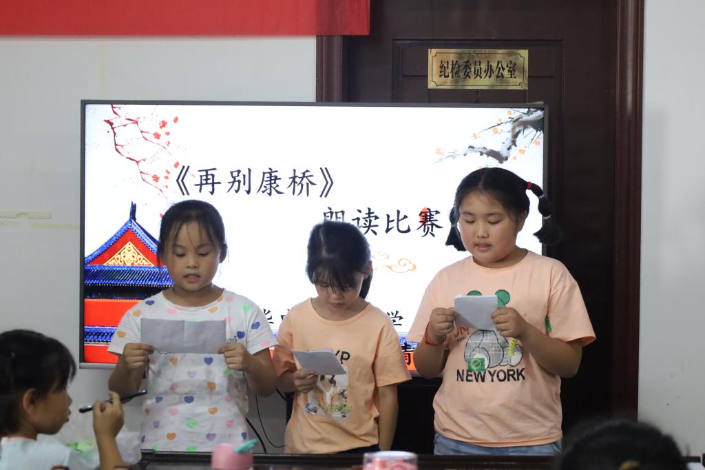 比赛筹备之初,青禾实践队队员全峻男从明确读音、理解句意、体会情感等方面带领孩子们深入浅出地学习了比赛篇目——《再别康桥》。青禾实践队队员张子杰介绍完比赛规则后,比赛正式开始。各小组以得体的举止展现自身的普通话实力,朗朗读书声在教室里回荡。